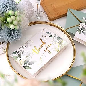 These premium thank you cards combine sophistication with practicality, featuring stunning gold foil lettering on high-quality 3.5 x 5-inch cardstock. Each set includes 50 elegant cards and 50 matching envelopes with classic water-activated adhesive seals, all neatly organized in a durable storage box.