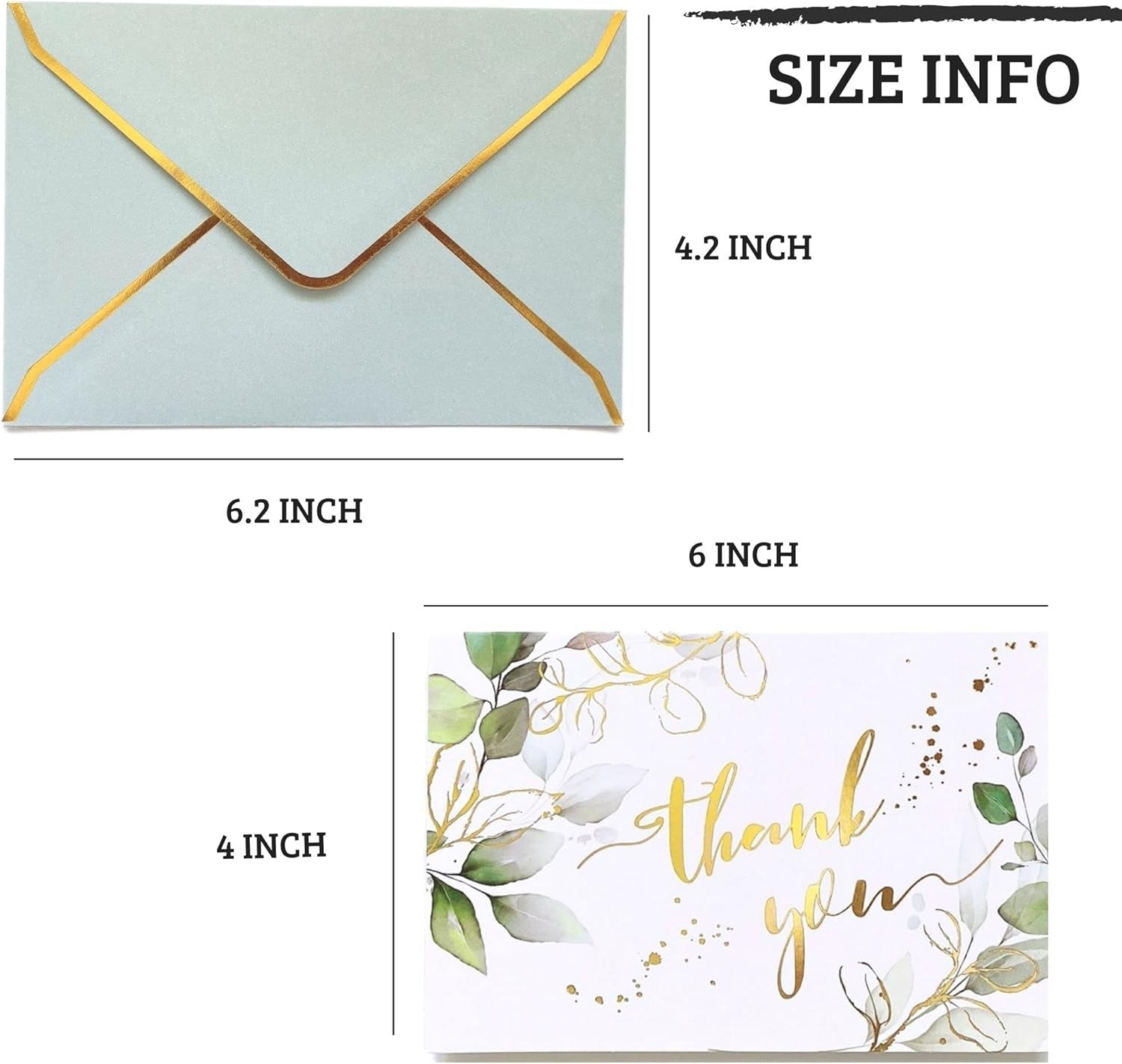 Luxurious Gold Thank You Cards with Envelopes Bulk Sage Green(50PCS)